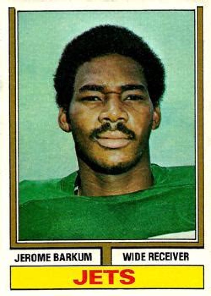 Jerome Barkum (born July 18, 1950) is a former wide receiver and tight end in the National Football League. He played 12 years with New York Jets. He was drafted by the Jets out of Jackson State University with the 9th overall pick in the first round of the 1972 NFL Draft. In 1973, he was selected to the Pro Bowl as a WR. His biggest catch in the NFL was made in Shea Stadium in a 1981 clash against the Miami Dolphins in the last seconds of the game to lift the Jets to victory 16-15. The Jets made the playoffs that year for the first time since their loss to the Kansas City Chiefs in 1969. | Net Worth | $850,000 |