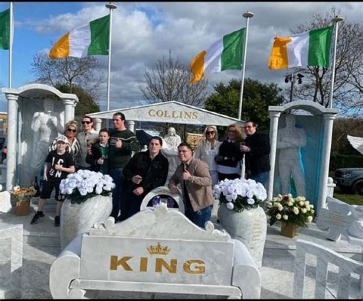 Gravestone fit for a traveller KING: Huge ‘£200,000’ memorial for bare-knuckle boxer father-of-nine ‘Big Willy Collins’ who died aged 49 is made from solid white marble, weighs 37 tonnes and features a solar-powered jukebox